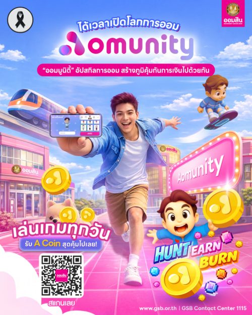 1 min read การเงิน-การลงทุน ออมสิน เปิดตัว “Aomunity” (ออม-มูนิตี้) โลกเสมือนจริงเพื่อการเรียนรู้การเงิน พลิกเกมสู่การอัปสกิล Financial Literacy อย่างยั่งยืน 22 มกราคม 2026 admin