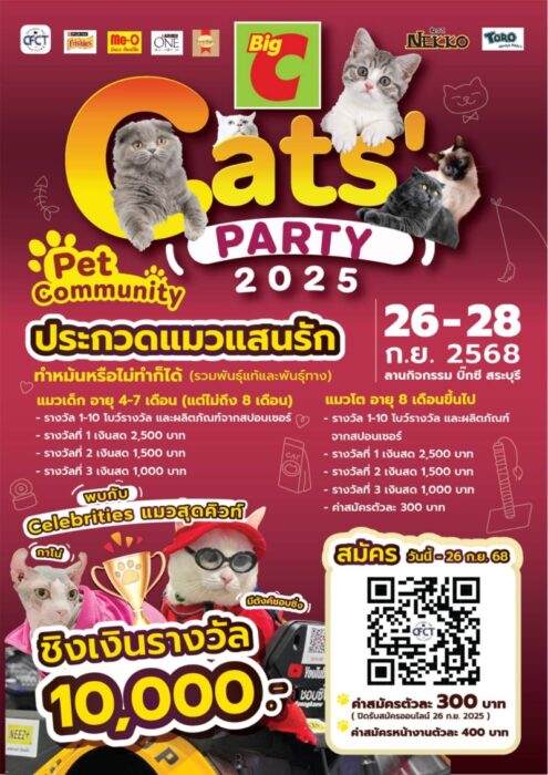 1 min read ข่าวประชาสัมพันธ์ บิ๊กซี ร่วมกับ พันธมิตร จัดงาน CATS’ PARTY 2025 ประกวดแมวแสนรัก ชิงเงินรางวัลมูลค่า 10,000 บาท ระหว่างวันที่ 26-28 กันยายน 2568 ที่ บิ๊กซี สาขาสระบุรี 23 กันยายน 2025 admin