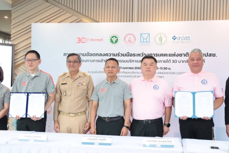 การเคหะแห่งชาติ (กคช.) เป็นหน่วยงานภายใต้การกำกับดูแลของกระทรวง พม. ซึ่งมีผู้อยู่อาศัยในโครงการพัฒนาที่อยู่อาศัยต่างๆ เป็นจำนวนกว่า 2 ล้านคนทั่วประเทศ ได้ร่วมกับ สปสช. ลงนามในบันทึกข้อตกลงความร่วมมือโครงการ “เพิ่มการเข้าถึงบริการสาธารณสุขและนวัตกรรมบริการ” สำหรับประชาชนภายใต้ระบบหลักประกันสุขภาพแห่งชาติหรือสิทธิบัตรทองที่อาศัยอยู่ในโครงการของ กคช. เพื่อส่งเสริมให้ประชาชนรับรู้สิทธิและเข้าถึงบริการสาธารณสุขและนวัตกรรมบริการได้อย่างครอบคลุมและเท่าเทียม โดยเฉพาะกลุ่มเปราะบาง อาทิ เด็ก ผู้สูงอายุ และคนพิการ ซึ่งเป็นกลุ่มที่ยังเข้าไม่ถึงบริการหรือเข้าถึงได้น้อย รวมถึงจะร่วมกันขับเคลื่อนนโยบายการจัดบริการการแพทย์ทางไกล (Telemedicine) บริการเชิงรุกในชุมชน ด้วยโครงการ 30 บาทรักษาทุกที่ ครอบคลุม 42 กลุ่มโรค เพื่อดูแลสุขภาพประชาชนในพื้นที่ให้สามารถเข้าถึงบริการทางการแพทย์ได้อย่างสะดวก และรวดเร็ว สามารถลดค่าใช้จ่ายและระยะเวลาในการเดินทางไปรับการรักษาที่โรงพยาบาล