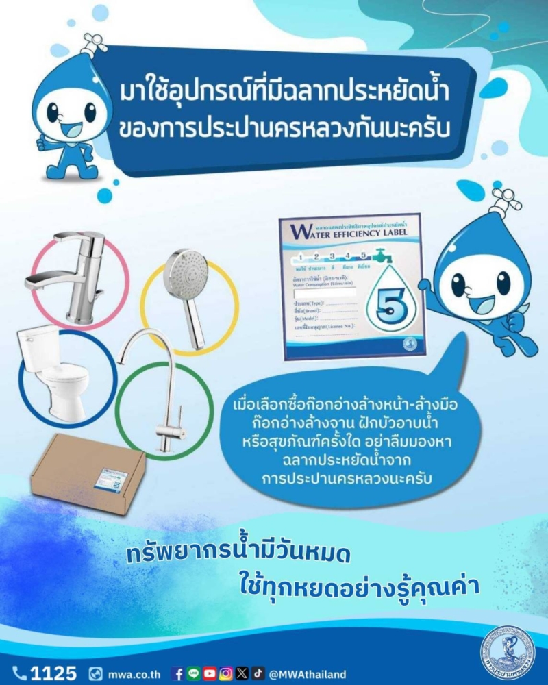 🛒ทุกครั้งที่เลือกซื้อสุขภัณฑ์ หรืออุปกรณ์การใช้น้ำ อย่าลืมมองหาฉลากประหยัดน้ำของการประปานครหลวงด้วยนะครับ