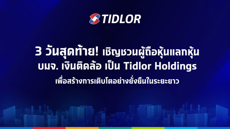 สำหรับนักลงทุนที่ยังอยู่ระหว่างวางแผนร่วมลงทุนในหุ้น TIDLOR วันที่ 28 เม.ย. 68 จะเป็นวันสุดท้ายที่สามารถซื้อหุ้น บมจ.เงินติดล้อ แล้วยังได้รับสิทธิ์ในการแลกหุ้นเป็น Tidlor Holdings อย่างไรก็ตามสามารถกลับมาร่วมลงทุนกับ Tidlor Holdings ได้อีกครั้ง หลังจากเข้าจดทะเบียนในตลาดหลักทรัพย์ฯ ช่วงกลางเดือนพฤษภาคม 2568 ภายใต้ชื่อย่อเดิม TIDLOR ทั้งนี้ ผู้ถือหุ้นที่ต้องการแลกหุ้นสามารถติดต่อได้ที่บริษัทหลักทรัพย์ที่มีบัญชีซื้อขายหลักทรัพย์อยู่ หรือติดต่อได้ที่บริษัทหลักทรัพย์ เกียรตินาคินภัทร จำกัด (มหาชน) โทร. 02-165-5555 กด 4 ทุกวันทำการ เวลา 8.00 น. – 18.00 น. และบริษัทหลักทรัพย์ อินโนเวสท์ เอกซ์ จำกัด โทร. 02-949-1999 ทุกวันทำการ เวลา 8.30 น. – 17.30 น. หรือเยี่ยมชมรายละเอียดการแลกหุ้นได้ที่เว็บไซต์ www.tidlorinvestor.com