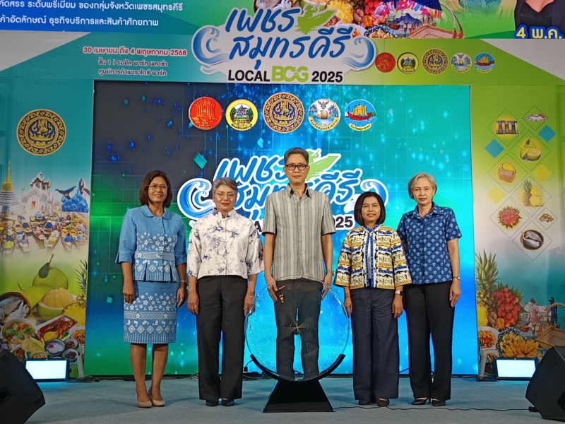 จังหวัดสมุทรสงคราม ร่วมกับ สำนักงานพาณิชย์จังหวัดสมุทรสงครามและกลุ่มจังหวัดภาคกลางตอนล่าง 2 ร่วมจัดงาน เพชรสมุทรคีรี BCG LOCA 2025 โดยนายรนัสถ์ชัย พุ่มเจริญ รองผู้ว่าราชการจังหวัดสมุทรสงคราม ร่วมกับ นางสาวยุพา นาคา พาณิชย์จังหวัดสมุทรสงคราม และ กลุ่มจังหวัดภาคกลางตอนล่าง 2 และศูนย์การค้าพาราไดซ์ พาร์ค จัดงาน “เพชรสมุทรคีรี Local BCG 2025” ภายใต้โครงการเพิ่มศักยภาพการจำหน่าย สินค้าและบริการ กิจกรรมยกระดับและเชื่อมโยงตลาดสินค้า BCG อัตลักษณ์พื้นถิ่น และ Soft Power เพชรสมุทรคีรี ประจำปีงบประมาณ พ.ศ. 2568 เพื่อเพิ่มช่องทางการขายสินค้าเกษตร อัตลักษณ์พื้นถิ่น สร้างรายได้ให้กับเกษตรกร และประชาสัมพันธ์เรื่องราวของสินค้าเกษตรอัตลักษณ์ท้องถิ่นของกลุ่มจังหวัดภาคกลางตอน