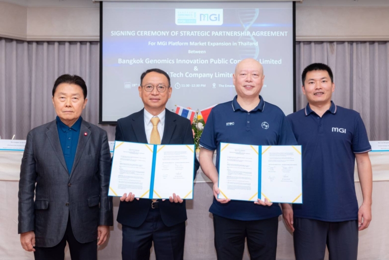 นายกรพจน์ อัศวินวิจิตร ประธานกรรมการบริหาร BKGI กล่าวว่า นับเป็นก้าวสำคัญที่แสดงถึงความมุ่งมั่นร่วมกันของทั้งสองฝ่าย ในการขยายการใช้งานและการเข้าถึงแพลตฟอร์ม MGI ในประเทศไทย เพื่อส่งเสริมนวัตกรรมด้านจีโนมิกส์ล้ำสมัย เพิ่มการเข้าถึงเทคโนโลยีการถอดรหัสพันธุกรรมคุณภาพสูง และมีส่วนร่วมในการพัฒนาระบบการดูแลสุขภาพและการแพทย์แม่นยำในภูมิภาค การขยายการให้บริการใหม่ๆร่วมกับพันธมิตร จะช่วยขยายฐานกลุ่มลูกค้าให้เพิ่มขึ้นอย่างต่อเนื่อง สนับสนุนผลการดำเนินงานบริษัทฯ ให้เติบโตอย่างก้าวกระโดด