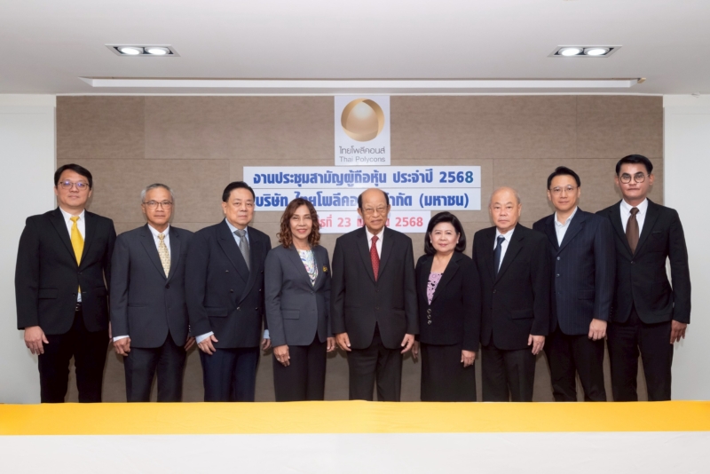 ดร.ธนู กุลชล (กลาง) ประธานกรรมการ, นางกนกทิพย์ จันทร์พลังศรี (ที่ 4 จากซ้าย) ประธานกรรมการบริหาร, นายปฐมพล สาวทรัพย์ (ที่ 1 จากขวา) ประธานเจ้าหน้าที่บริหารและกรรมการผู้จัดการใหญ่ พร้อมคณะกรรมการ บริษัท ไทยโพลีคอนส์ จำกัด (มหาชน) (TPOLY) ถ่ายภาพร่วมกันในงานการประชุมสามัญผู้ถือหุ้นประจำปี 2568 ผ่านระบบสื่ออิเล็กทรอนิกส์ (E-AGM) โดยผู้ถือหุ้นมีมติเห็นชอบให้ผ่านทุกวาระ ทั้งนี้ บริษัทฯ มุ่งมั่นในการบริหารธุรกิจด้วยความโปร่งใส ตามหลักธรรมาภิบาลที่ดี พร้อมทั้ง เดินหน้าเข้าประมูลงานใหม่ โดยเฉพาะงานภาคเอกชนที่มี Margin สูง ทั้งการก่อสร้างโรงพยาบาล ห้างสรรพสินค้า คอนโดมิเนียม เป็นต้น งานดังกล่าวจัดขึ้น ณ ห้องประชุม สำนักงานใหญ่ บมจ.ไทยโพลีคอนส์ กรุงเทพฯ เมื่อเร็วๆ นี้