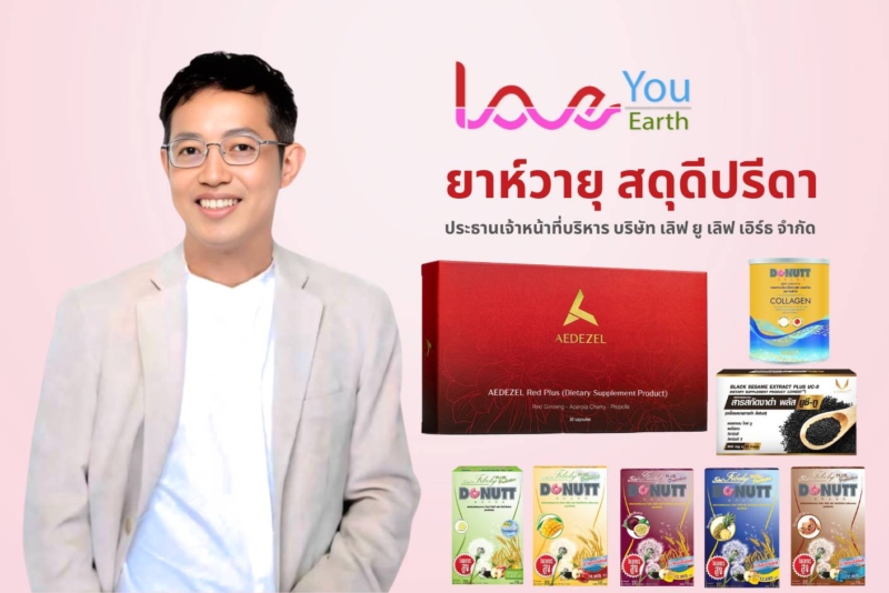 นายยาห์วายุ สดุดีปรีดา ประธานเจ้าหน้าที่บริหาร บริษัท เลิฟ ยู เลิฟ เอิร์ธ จำกัด (LOVE YOU LOVE EARTH) กล่าวว่า หนึ่งในผลิตภัณฑ์เด่นของบริษัทที่มีการจัดจำหน่ายให้กับผู้บริโภค คือกลุ่มเครื่องดื่มดีท็อกซ์ลำไส้ที่ผสมใยอาหารจากธรรมชาติ และเสริมคุณค่าด้วยสารสกัดพิเศษ ในหลากหลายรสชาติ ภายใต้แบรนด์ Brand Nova Organic กลุ่มผลิตภัณฑ์เสริมอาหารภายใต้เครื่องหมายการค้า โดนัทท์ “DONUTT” ได้แก่ Total Fibely Plus กลิ่นมะนาว ช่วยดีท็อกซ์ลำไส้ ,Total Fibely Plus กลิ่นมะม่วง ดีท็อกซ์ลำไส้ ลดอาการท้องผูก ,Total Fibely Plus กลิ่นมะขาม ช่วยบำรุงผิวและเส้นผม ,Total Fibely Plus กลิ่นเสาวรส ส่งเสริมการย่อยอาหาร และควบคุมน้ำหนัก ,Total Fibely Plus กลิ่นสับปะรด ปรับสมดุลลำไส้และระบบขับถ่าย นอกจากนี้ยังมีผลิตภัณฑ์เสริมอาหารเพื่อสุขภาพสำหรับผู้สูงอายุและกลุ่มผู้ใส่ใจสุขภาพโดยเฉพาะ คอลลาเจนไดเปปไทด์ พลัส แคลเซียม มีคุณสมบัติช่วยเสริมสร้างมวลกระดูก เหมาะสำหรับผู้สูงอายุ และผลิตภัณฑ์จาก Livnest สารสกัดงาดำ พลัส ยูซี-ทู ช่วยบำรุงข้อต่อและกระดูก ลดปัญหาอาการปวดตามข้อ รวมถึงจัดจำหน่ายผลิตภัณฑ์ AEDEZEL Red Plus ผลิตภัณฑ์เสริมอาหารเพื่อสุขภาพ (Health Functional food) อุดมไปด้วยสารอาหารสำคัญต่อการดูแลสุขภาพ วิตามินซีสูง เสริมสร้างภูมิคุ้มกัน เหมาะสาหรับผู้ที่มีปัญหาภูมิแพ้ง่าย และช่วยลดการอักเสบในร่างกาย ผ่านการรับรองโดยองค์การอาหารและยาประเทศเกาหลี (KFDA) “ผลิตโดยโรงงานชั้นนำจากประเทศเกาหลีใต้ที่ได้รับมาตรฐาน GMP และ HACCP ตามมาตรฐานสากล” บริษัท เลิฟ ยู เลิฟ เอิร์ธ จำกัด ยังคงเดินหน้าส่งเสริมสุขภาพและคุณภาพชีวิตของคนไทย ผ่านผลิตภัณฑ์ที่ผลิตและพัฒนาจากงานวิจัย พร้อมรับรองความปลอดภัย และมีมาตรฐานการผลิตระดับสากลเพื่อสร้างความมั่นใจให้กับผู้บริโภค และยกระดับผลิตภัณฑ์ไทยสู่ตลาดสุขภาพทั้งในประเทศ และต่างประเทศอย่างยั่งยืน