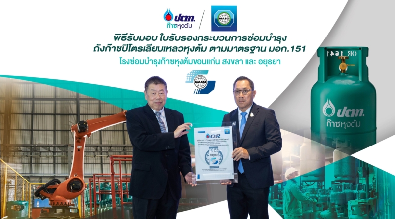หม่อมหลวงปีกทอง ทองใหญ่ ประธานเจ้าหน้าที่บริหาร บริษัท ปตท. น้ำมันและการค้าปลีก จำกัด (มหาชน) หรือ OR รับมอบใบรับรองกระบวนการซ่อมบำรุงถังก๊าซปิโตรเลียวเหลวหุงต้ม ตามมาตรฐาน มอก.151 จาก นายจงรักษ์ โรจน์พลาเสถียร ผู้อำนวยการสถาบันรับรองมาตรฐานไอเอสโอ ตอกย้ำความมั่นใจให้ผู้บริโภคก๊าซหุงต้ม ปตท. ผ่านการยกระดับมาตรฐานด้านความปลอดภัยอย่างต่อเนื่อง โดยโรงซ่อมถังก๊าซหุงต้ม ปตท. ทั้ง 3 แห่ง ได้แก่ โรงซ่อมถังก๊าซหุงต้ม ปตท. จ.พระนครศรีอยุธยา สงขลา และ ขอนแก่น ผ่านการรับรองกระบวนการซ่อมบำรุงถังก๊าซปิโตรเลียวเหลวหุงต้ม ตามมาตรฐาน มอก.151 ซึ่งเป็นมาตรฐานกระบวนการซ่อมบำรุง การตรวจสอบ และการทดสอบถังก๊าซปิโตรเลียมเหลวหุงต้มที่มีการกำหนดมาตรฐานหลักเกณ์ วิธีการ และ เครื่องมือที่ใช้การดำเนินการ ซึ่งกำหนดโดยสำนักงานมาตรฐานผลิตภัณฑ์อุตสาหกรรม (สมอ.) กระทรวงอุตสาหกรรม ถือเป็นบริษัทแรกของประเทศไทยที่ผ่านการรับรองในกระบวนการนี้