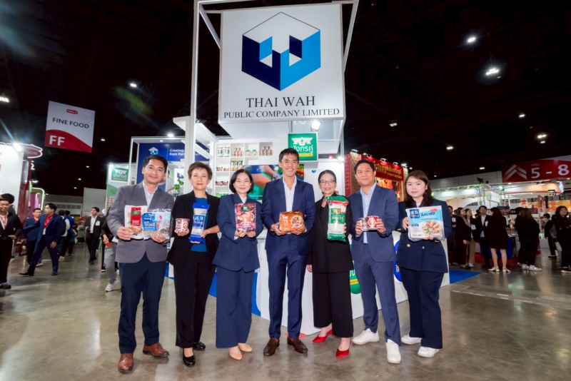 คุณโฮ เรน ฮวา ประธานเจ้าหน้าที่บริหาร พร้อมด้วยคณะผู้บริหาร บริษัท ไทยวา จำกัด (มหาชน) หรือ TWPC ร่วมถ่ายภาพที่บูธจัดแสดงภายในงาน THAIFEX-ANUGA ASIA 2025 งานแสดงสินค้าอาหารและเครื่องดื่มชั้นนำแห่งเอเชีย ณ อิมแพ็ค อารีนา เมืองทองธานี โดยไทยวาได้นำเสนอผลิตภัณฑ์นวัตกรรมอาหารครบวงจร อาทิ ผลิตภัณฑ์แป้งและส่วนผสมอาหาร วุ้นเส้น เส้นก๋วยเตี๋ยว และผลิตภัณฑ์ไบโอพลาสติกจากแป้งมันสำปะหลัง พร้อมเปิดตัวสินค้าใหม่ “ตำเส้นเล็กปลาร้า” ภายใต้แบรนด์มังกรคู่ และสาธิตการปรุงอาหารจากผลิตภัณฑ์ไทยวา ซึ่งได้รับความสนใจจากผู้ร่วมงานและคู่ค้าอย่างล้นหลาม
