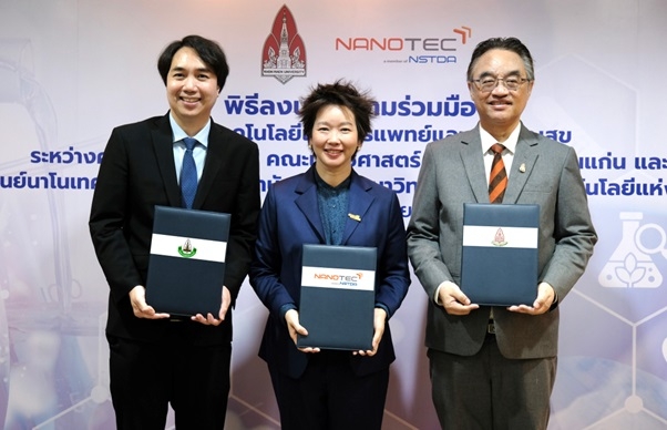 เมื่อวันที่ 5 มิถุนายน 2568 ณ มหาวิทยาลัยขอนแก่น – กระทรวงการอุดมศึกษา วิทยาศาสตร์ วิจัยและนวัตกรรม (อว.) โดย ดร. อุรชา รักษ์ตานนท์ชัย ผู้อำนวยการศูนย์นาโนเทคโนโลยีแห่งชาติ (นาโนเทค) สำนักงานพัฒนา วิทยาศาสตร์และเทคโนโลยีแห่งชาติ (สวทช.) ร่วมกับมหาวิทยาลัยขอนแก่น โดย รศ. ภัทรพงษ์ มกรเวส คณบดีคณะแพทยศาสตร์ ลงนามความร่วมมือทางวิชาการด้านนาโนเทคโนโลยีเพื่อการแพทย์และสาธารณสุข เพื่อสร้างเครือข่ายความร่วมมือการวิจัยและพัฒนานาโนเทคโนโลยีด้านการแพทย์และสาธารณสุข ระหว่าง 2 หน่วยงาน โดยมี ผศ.ดร. เภสัชกรนรินทร์ จันทร์ศรี คณบดีคณะเภสัชศาสตร์,