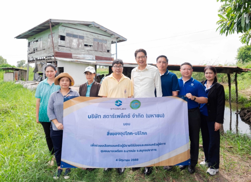 ดร.สมโภชน์ วัลยะเสวี (กลาง) ประธานเจ้าหน้าที่บริหาร บริษัท สตาร์เฟล็กซ์ จำกัด (มหาชน) (SFLEX) พร้อมคณะผู้บริหารและพนักงานร่วมลงพื้นที่ ชุมชนตำบลบางเพรียง อำเภอบางบ่อ จังหวัดสมุทรปราการ ร่วมกับคณะทำงานจากองค์การบริหารส่วนตำบลบางเพรียง เพื่อมอบสิ่งของอุปโภค บริโภค ที่จำเป็น และเงินช่วยเหลือแก่ครอบครัวผู้มีรายได้น้อย และครอบครัวผู้พิการที่ไม่สามารถช่วยเหลือตนเองได้ เพื่อเป็นกำลังใจและสร้างเสริมคุณภาพชีวิตที่ดีขึ้น ภายใต้โครงการ ESG “สตาร์เฟล็กซ์ ปันน้ำใจ ให้สังคม” ซึ่งกิจกรรมในครั้งนี้ถือเป็นส่วนหนึ่งของนโยบายการดำเนินธุรกิจอย่างมีความรับผิดชอบต่อสังคมและสิ่งแวดล้อมของบริษัทฯ ตามแนวคิด “Happy Heart, Happy Society” ซึ่งมุ่งเน้นการรู้จักแบ่งปัน สร้างมิตรภาพอันดีระหว่างองค์กรและชุมชนเพื่อพัฒนาสู่สังคมที่ยั่งยืน พร้อมทั้งยังส่งเสริมความร่วมมือกับองค์กรอื่นๆ สร้างเครือข่ายองค์กรคุณธรรมเพื่อสังคมในอนาคต สานต่อภารกิจแห่งการให้ ในรูปแบบต่างๆ อย่างต่อเนื่อง