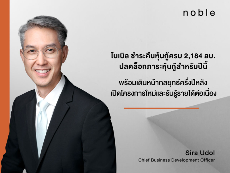 “NOBLE ยังคงยึดมั่นในการบริหารพอร์ตโฟลิโออย่างมีวินัย สร้างสมดุลทางการเงิน และเดินหน้าพัฒนาโครงการที่ตอบโจทย์ตลาดอย่างต่อเนื่อง ด้วยความเชื่อมั่นจากนักลงทุนซึ่งเป็นพลังสำคัญในการขับเคลื่อนธุรกิจให้เติบโตอย่างมั่นคงและยั่งยืน”