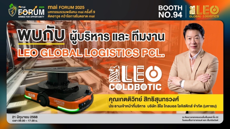 บมจ.ลีโอ โกลบอล โลจิสติกส์ (LEO) นำทัพโดย “เกตติวิทย์ สิทธิสุนทรวงศ์” ประธานเจ้าหน้าที่บริหาร แท็กทีมฝ่ายบริหารร่วมให้ข้อมูลแก่นักลงทุนที่สนใจ แบบจัดเต็ม ในงาน mai FORUM 2025 : มหกรรมรวมพลังคน mai ครั้งที่ 9 ‘Armed for Opportunity ติดอาวุธ คว้าโอกาส ในตลาด mai’ อยากรู้ LEO มีดีอะไร เชิญมาพบกันได้ในวันเสาร์ที่ 21 มิถุนายนนี้ ที่บูธ 94 ตั้งแต่เวลา 09.30 – 17.00 น. ณ ห้องบางกอกคอนเวนชันเซ็นเตอร์ ชั้น 22 โรงแรมเซ็นทาราแกรนด์ แอท เซ็นทรัลเวิลด์….งานนี้พลาดไม่ได้คร้า!