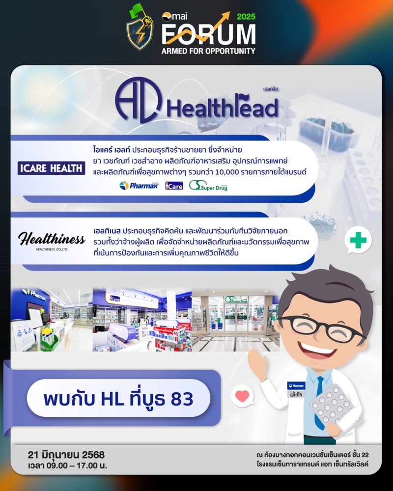 ห้ามพลาด!! สำหรับคนที่สนใจข้อมูลเด็ด แบบ exclusive ของ บริษัท เฮลท์ลีด จำกัด (มหาชน) หรือ HL โอกาสดีๆ มาถึงแล้ว ซีอีโอคนเก่ง “ธัชพล ชลวัฒนสกุล” พร้อมให้ข้อมูลแนวโน้มธุรกิจ และผลิตภัณฑ์นวัตกรรมใหม่ที่สามารถสร้างมูลค่าเพิ่มให้บริษัท พบกันในงาน mai FORUM 2025 : มหกรรมรวมพลังคน mai ครั้งที่ 9 ในวันที่ 21 มิถุนายนนี้ ตั้งแต่เวลา 09.30 – 17.00 น. ณ บูธ 83 ห้องบางกอกคอนเวนชันเซ็นเตอร์ ชั้น 22 โรงแรมเซ็นทารา แกรนด์ แอท เซ็นทรัลเวิลด์ กทม.งานดีๆ แบบนี้ มาร่วมงานกันให้ได้นะคร้าาา!!!