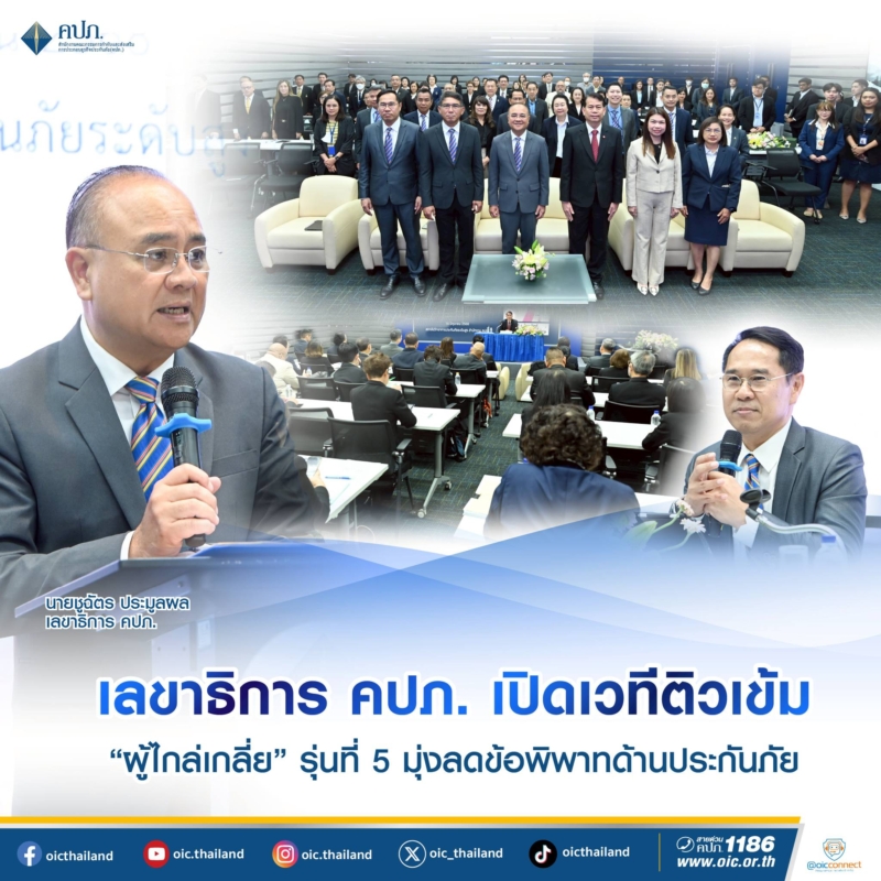 เมื่อวันจันทร์ที่ 16 มิถุนายน 2568 นายชูฉัตร ประมูลผล เลขาธิการคณะกรรมการกำกับและส่งเสริมการประกอบธุรกิจประกันภัย (เลขาธิการ คปภ.) เป็นประธานกล่าวเปิดงาน “ปฐมนิเทศผู้ชำนาญการ (บุคคลภายนอก) เพื่อทำหน้าที่ผู้ไกล่เกลี่ยข้อพิพาท ด้านการประกันภัย สำนักงาน คปภ. รุ่นที่ 5” โดยเลขาธิการ คปภ. ได้กล่าวว่า การไกล่เกลี่ยข้อพิพาทด้านการประกันภัยเป็นกระบวนการสำคัญที่สำนักงาน คปภ. ได้ดำเนินการขึ้นเพื่อเพิ่มประสิทธิภาพในการคุ้มครองสิทธิประโยชน์ของผู้เอาประกันภัยและประชาชน และเพิ่มทางเลือกสำหรับประชาชนในการระงับข้อพิพาทด้านการประกันภัยโดยไม่มีค่าใช้จ่าย ซึ่งช่วยให้คู่กรณีสามารถตกลงยุติข้อพิพาทได้อย่างรวดเร็ว ส่งผลให้คู่กรณีทุกฝ่ายได้รับความพึงพอใจ ดังนั้น ผู้ไกล่เกลี่ยจึงถือเป็นกำลังสำคัญที่จะร่วมขับเคลื่อนกระบวนการยุติธรรมทางเลือกให้เกิดประโยชน์แก่ประเทศชาติและประชาชน