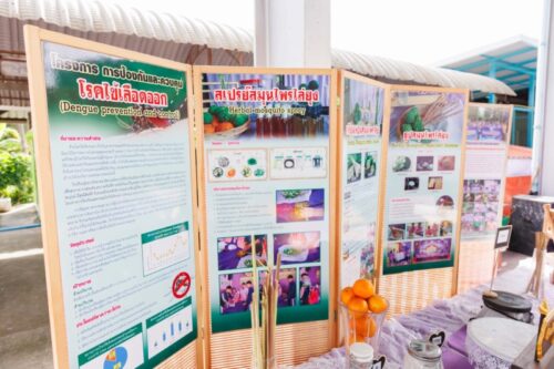 พร้อมด้วยนักเรียนจากโรงเรียนที่ได้รับการสนับสนุนโครงการ STEM Modeling School 5 โรงเรียน ได้แก่ โรงเรียนชุมชนวัดบ้านระกาศ จังหวัดสมุทรปราการ, โรงเรียนอุ้มผางวิทยาคม จังหวัดตาก, โรงเรียนท่าสองยางวิทยาคม จังหวัดตาก, โรงเรียนบ้านช่อผกา จังหวัดบุรีรัมย์ และ โรงเรียนบ้านหนองเตียน จังหวัดสระแก้ว เข้าร่วมกิจกรรมเพื่อสร้างความตระหนักรู้ สร้างการมีส่วนร่วมในการป้องกันไข้เลือดออก ออกจัดบูธแสดง นวัตกรรมใหม่ๆ เช่น เครื่องมือหรือวิธีการที่สามารถช่วยลดจำนวนยุงลายในชุมชนได้ การสร้างความรู้และความเข้าใจในชุมชน การนำสมุนไพรต่างๆ ที่อยู่ตามธรรมชาติมาทำผลิตภัณฑ์หรือสเปรย์ไว้ฉีดไล่ยุง การเพาะพันธุ์ปลาหางนกยูงเพื่อกำจัดลูกน้ำและการทำแคปซูลสมุนไพรไล่ยุง ด้วยแนวคิด “3 เก็บ ป้องกัน 3 โรค” (เก็บบ้าน เก็บขยะ เก็บน้ำ ป้องกันโรคไข้เลือดออก โรคเชื้อไวรัสซิก้า โรคปวดข้อยุงลาย ) และแนวคิด “5 ป 1 ข” (ปิดฝาภาชนะให้สนิท ปล่อยปลากินลูกน้ำ ปรับปรุงสิ่งแวดล้อมไม่ให้เป็นแหล่งเพาะพันธุ์ เปลี่ยนน้ำในภาชนะที่ปิดไม่ได้ ปฏิบัติเป็นประจำต่อเนื่องทุก 7 วัน ขัดไข่ทิ้งน้ำลงพื้นดินเพื่อให้ไข่แห้งตาย)