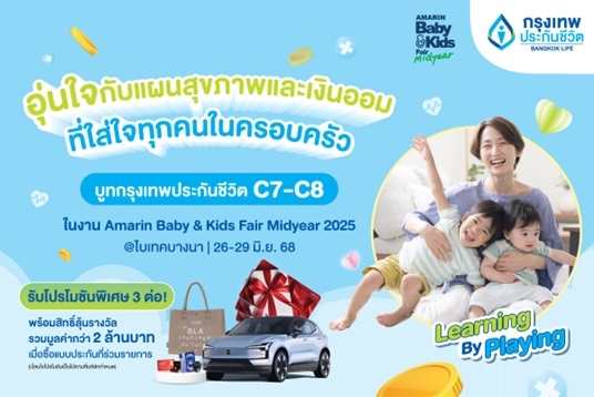 กรุงเทพประกันชีวิต ขอส่งมอบความ “อุ่นใจ” กับแผนสุขภาพและเงินออม ที่ “ใส่ใจ”ทุกคนในครอบครัว ในงาน แฟร์ที่คุณพ่อคุณแม่ห้ามพลาด Amarin Baby & Kids Fair Midyear 2025 เตรียมยกทัพแบบประกันดี ๆ ที่ออกแบบมาด้วยความใส่ใจ ไม่ว่าจะเป็น “กรุงเทพ สมาร์ท คิดส์” แบบประกันสะสมทรัพย์ที่ซื้อ 1 ได้ถึง 4 มั่นใจกับผลตอบแทนที่แน่นอน พร้อมความคุ้มครองด้านสุขภาพ ตอบโจทย์ทุกเป้าหมายในอนาคตเพื่อลูกน้อย “กรุงเทพ สุดคุ้ม” แผนการออมที่คุ้มค่า และหลากหลายแผนคุ้มครองที่มอบความอุ่นใจในทุกช่วงเวลาสำหรับครอบครัว ระหว่างวันที่ 26 – 29 มิถุนายน 2568 ที่บูท C7-C8 ฮอลล์ 104 ศูนย์แสดงสินค้าและนิทรรศการ ไบเทคบางนา ภายในงานพบกับกิจกรรมสร้างสรรค์เพื่อพัฒนาการเรียนรู้ของลูกน้อย และรับฟังสาระดี ๆ กับเวทีเสวนาห้องเรียน พ่อแม่ ในวันเสาร์ที่ 28 มิถุนายน เวลา 13.30 น. โดย ผศ.ดร.ปนัดดา ธนเศรษฐกร ผู้เชี่ยวชาญด้านเทคนิคการสร้างวินัยเชิงบวกและการส่งเสริมทักษะสมอง EF สถาบันแห่งชาติเพื่อการพัฒนาเด็กและครอบครัว มหาวิทยาลัยมหิดล พร้อมผู้เชี่ยวชาญจากกรุงเทพประกันชีวิตที่จะมาแนะนำการวางแผนการเงินเพื่ออนาคตลูก และโปรโมชันสุดพิเศษมากมาย