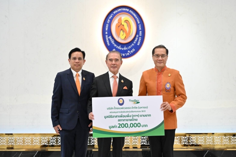 บริษัท ไทยเบฟเวอเรจ จำกัด (มหาชน) สนับสนุนการจัดพิมพ์หนังสือครบรอบ 30 ปี มูลนิธิอาสาเพื่อนพึ่ง (ภาฯ) ยามยาก สภากาชาดไทย จำนวน 200,000 บาท โดยมี คุณวีระศักดิ์ โควสุรัตน์ กรรมการ มูลนิธิอาสาเพื่อนพึ่ง (ภาฯ) ยามยาก สภากาชาดไทย เป็นผู้รับมอบ จาก คุณพลภัทร สุวรรณศร และ คุณแพทริค หอรัตนชัย ณ มูลนิธิอาสาเพื่อนพึ่ง (ภาฯ) ยามยาก สภากาชาดไทย เมื่อเร็วๆ นี้ เรียงลำดับภาพจากซ้ายไปขวา