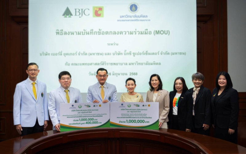 บริษัท ไทยเบฟเวอเรจ จำกัด (มหาชน) และ กลุ่มบีเจซี บิ๊กซี มอบเงินสนับสนุน คณะแพทยศาสตร์ ศิริราชพยาบาล มหาวิทยาลัยมหิดล เพื่อนำไปใช้ ใน “โครงการแสงนำใจไทยทั้งชาติ เดิน วิ่ง ปั่นป้องกันอัมพาต ครั้งที่ 11 เฉลิมพระเกียรติ” จำนวน 1,000,000 บาท พร้อมสนับสนุนผลิตภัณฑ์ จำนวน 400,000 บาท และ สนับสนุนกองทุน “ศูนย์ความเป็นเลิศเพื่อผู้ป่วยสโตรค ในระยะก่อนถึงโรงพยาบาล” (Stroke ExPreS) จำนวน 1,000,000 บาท โดยมี ศ.นพ.อภิชาติ อัศวมงคลกุล คณบดี คณะแพทยศาสตร์ศิริราชพยาบาล ศ.ดร.นพ.ยงยุทธ ศิริวัฒนอักษร และ รศ.นพ.ยงชัย นิละนนท์ รับมอบจาก คุณฐาปณี เตชะเจริญวิกุล ประธานเจ้าหน้าที่บริหารและกรรมการผู้จัดการใหญ่ บริษัท เบอร์ลี่ ยุคเกอร์ จำกัด (มหาชน) หรือกลุ่มบีเจซี บิ๊กซี ร่วมด้วย คุณภาวินี ไชยสิทธิ์ ผู้อำนวยการสำนักประสานงานภายนอก บริษัท ไทยเบฟเวอเรจ จำกัด (มหาชน) คุณธีรวรรณ ศรีสุข ภญ.ปาณิสรา ไชยรุ่งรัตน์ และ คุณเหมวรรณ พูนผล ณ ตึกอำนวยการ โรงพยาบาลศิริราช เมื่อเร็วๆ นี้