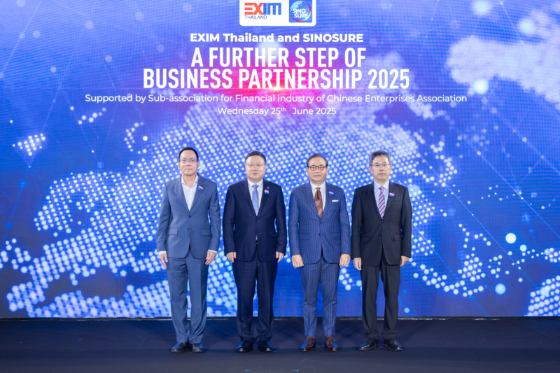 นายบัณฑิต สะเพียรชัย กรรมการ และรักษาการกรรมการผู้จัดการ ธนาคารเพื่อการส่งออกและนำเข้าแห่งประเทศไทย (EXIM BANK) และนายซู ซินเหว่ย Vice President องค์กรรับประกันแห่งสาธารณรัฐประชาชนจีน (China Export & Credit Insurance Corporation : SINOSURE) ซึ่งเป็นองค์กรรับประกันภาครัฐด้านการค้าและการลงทุนแห่งสาธารณรัฐประชาชนจีน เป็นประธานเปิดงานสัมมนา “EXIM Thailand and SINOSURE : A Further Step of Business Partnership 2025” จัดโดย EXIM BANK ร่วมกับ SINOSURE เพื่อเสริมสร้างความร่วมมือทางการค้าระหว่างไทย-จีน ท่ามกลางความท้าทายและโอกาสใหม่ในเศรษฐกิจโลก โดยมีผู้ประกอบการจากทั้งสองประเทศกว่า 120 รายเข้าร่วมงาน ณ โรงแรมคาเพลลา กรุงเทพ เมื่อวันที่ 25 มิถุนายน 2568