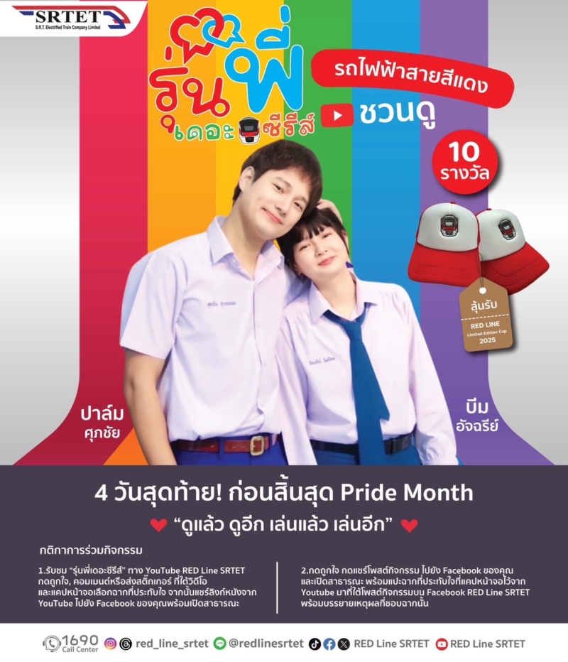 U Hoo+ + 4 วัน สุดท้าย! ก่อนสิ้นสุด Pride🌈Month รถไฟฟ้าสายสีแดง ชวนเพื่อนๆ ดู “รุ่นพี่เดอะซีรีส์“ ทาง YouTube • RED Line SRTET