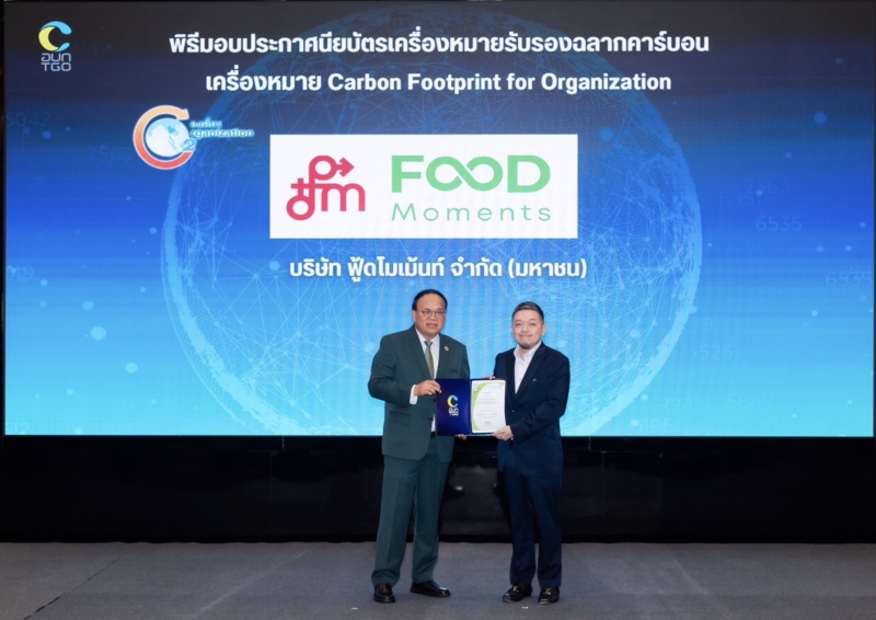 ดร.วิจารย์ สิมาฉายา (ซ้าย) ประธานกรรมการองค์การบริหารจัดการก๊าซเรือนกระจก (องค์การมหาชน) ถ่ายภาพร่วมกับ คุณสุเมธ มาสิลีรังสี (ขวา) ประธานเจ้าหน้าที่ฝ่ายการเงิน ตัวแทนจาก บริษัท ฟู้ดโมเม้นท์ จำกัด (มหาชน) (FM) ในโอกาสที่บริษัทฯได้รับใบประกาศนียบัตรรับรอง “ฉลากคาร์บอนฟุตพริ้นท์ขององค์กร” (Carbon Footprint for Organization: CFO) ประจำปี 2568 ซึ่งจัดโดยองค์การบริหารจัดการก๊าซเรือนกระจก (องค์การมหาชน) โดย FM แสดงเจตจำนงในการดำเนินธุรกิจอย่างยั่งยืน ตระหนักถึงภาวะโลกร้อน และให้ความสำคัญกับการลดผลกระทบต่อสิ่งแวดล้อม ควบคู่ไปกับการพัฒนา ESG ทั้งด้านสิ่งแวดล้อม สังคม และธรรมาภิบาล เพื่อการเติบโตที่มั่นคงและยั่งยืนในระยะยาว งานดังกล่าวจัดขึ้น ณ ห้อง Conference Hall สถาบันเพื่อการยุติธรรมแห่งประเทศไทย (TIJ) ถนนแจ้งวัฒนะ เมื่อเร็วๆ นี้