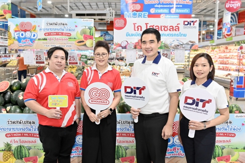 โก โฮลเซลล์ (GO WHOLESALE) ศูนย์ค้าส่งวัตถุดิบอาหาร ที่มีความสดใหม่ตลอดเวลาเพื่อผู้ประกอบการ ภายใต้การดำเนินงานของ บริษัท เซ็นทรัล ฟู้ด โฮลเซลล์ จำกัด ในเครือเซ็นทรัล รีเทล ขานรับนโยบาย กรมการค้าภายใน กระทรวงพาณิชย์ กระจายผลไม้ช่วยเหลือเกษตรกรไทยอย่างต่อเนื่อง ล่าสุดจัดกิจกรรมส่งเสริมการบริโภค ด้วยการคิกออฟโครงการ “GO Food ส่งสุขให้ทุกรอยยิ้ม” เชิญชวนลูกค้าทุกกลุ่มซื้อผลไม้ที่ร่วมรายการ 6 ชนิด ได้แก่ แตงโม (พันธุ์กินรี ตอปิโด ซอนญ่า) เมลอนเนื้อเขียว เมลอนเนื้อส้ม แคนตาลูปซันเลดี้ มะละกอฮอลแลนด์ สับปะรดศรีราชา และ กล้วยหอม กล้วยคาเวนดิช กล้วยไข่ กล้วยน้ำว้า โดย ทุก 1 กิโลกรัม หรือ 1 หน่วย (หวี/แพค) เท่ากับ 1 บาท จะนำไปส่งมอบเป็นทุนอาหารกลางวันให้แก่โรงเรียน ในพื้นที่ที่สาขาตั้งอยู่ทั่วประเทศจำนวน 14 แห่ง