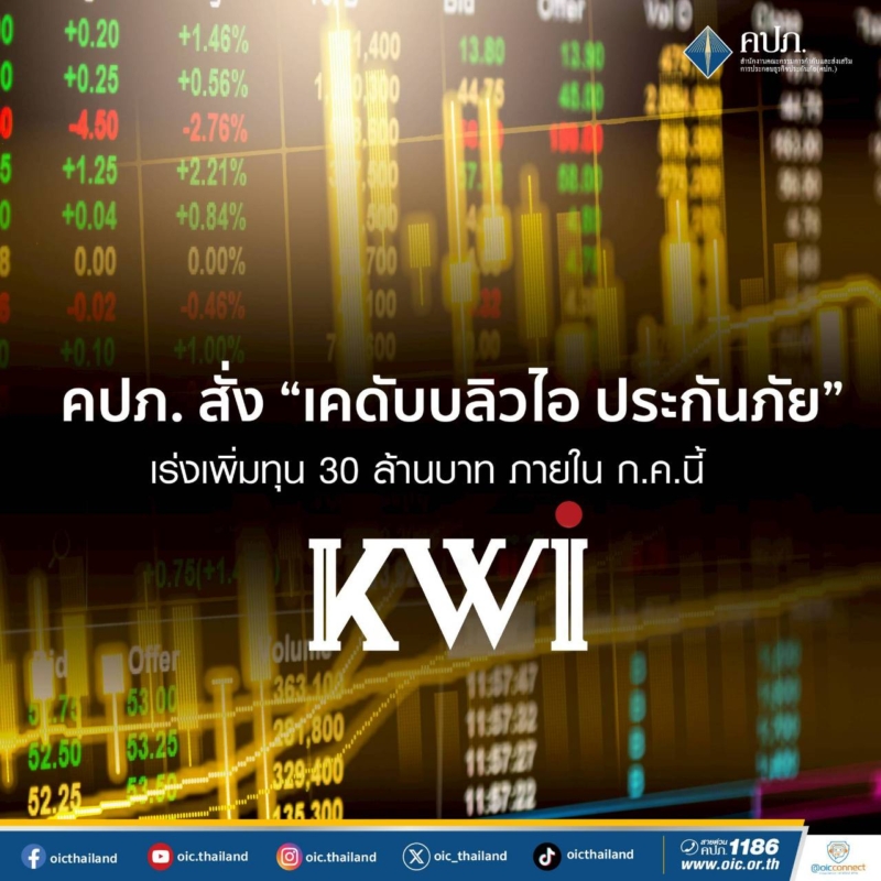 สำนักงานคณะกรรมการกำกับและส่งเสริมการประกอบธุรกิจประกันภัย (สำนักงาน คปภ.) รายงานว่า สำนักงาน คปภ. ยังคงเดินหน้าควบคุม บริษัท เคดับบลิวไอ ประกันภัย จำกัด (มหาชน) อย่างเข้มงวด โดยตามคำสั่งนายทะเบียนที่ 12/2568 ลงวันที่ 22 พฤษภาคม 2568 บริษัท เคดับบลิวไอประกันภัย จำกัด (มหาชน) ถูกสั่งให้ดำเนินการแก้ไขฐานะการเงินและ การดำเนินงาน รวมถึงหยุดรับประกันภัยใหม่เป็นการชั่วคราว