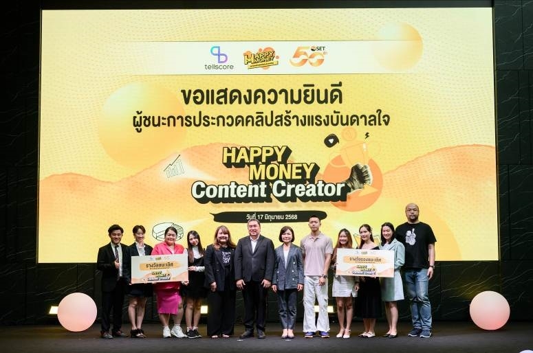 ตลาดหลักทรัพย์ฯ มอบรางวัลประกวดคลิปความรู้ทางการเงินแก่อินฟลูเอนเซอร์และคอนเทนต์ครีเอเตอร์ที่เข้าร่วมแคมเปญ “Happy Money Content Creator” โดยมี ศรพล ตุลยะเสถียร รองผู้จัดการ พรรณวดี ลดาวัลย์ ณ อยุธยา ผู้ช่วยผู้จัดการ ตลาดหลักทรัพย์ฯ และ อัยยา ตันติเสรีรัตน์ บ. เทลสกอร์ (Tellscore) ร่วมมอบรางวัล เมื่อ 17 มิ.ย. 2568 ที่ผ่านมา แคมเปญนี้เป็นความร่วมมือระหว่างตลาดหลักทรัพย์ฯ และ บ. เทลสกอร์ ชวนเหล่าอินฟลูเอนเซอร์และคอนเทนต์ครีเอเตอร์ยุคใหม่เรียนรู้และเข้าใจเรื่องการเงินการลงทุนที่ถูกต้อง เพื่อสร้างความมั่นคงทางการเงินให้แก่ตนเองพร้อมเป็นสื่อกลางส่งต่อความรู้ มีผู้ได้รับรางวัลชนะเลิศและรองชนะเลิศ รวม 10 รางวัล หวังเป็นพลังสำคัญในการบอกต่อความรู้ผลักดันสังคมไทยไปสู่ความสุขทางการเงินได้อย่างยั่งยืน สำหรับผู้ที่สนใจสามารถติดตามคอนเทนต์จากเหล่าคอนเทนต์ครีเอเตอร์ ได้ที่ www.set.or.th/happymoneycontentcreator
