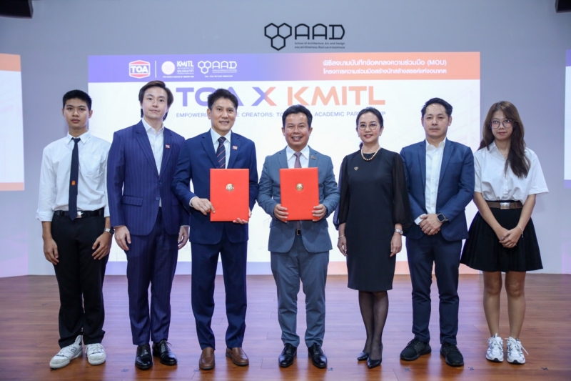 คณะสถาปัตยกรรม ศิลปะและการออกแบบ สถาบันเทคโนโลยีพระจอมเกล้าเจ้าคุณทหารลาดกระบัง (AAD KMITL) ร่วมกับ บริษัท ทีโอเอ เพ้นท์ (ประเทศไทย) จำกัด (มหาชน) ลงนามบันทึกข้อตกลงความร่วมมือทางวิชาการ (MOU) ครั้งสำคัญ ผลักดันโครงการความร่วมมือสร้างนักสร้างสรรค์แห่งอนาคต เพื่อยกระดับการเรียนรู้และบ่มเพาะนักออกแบบรุ่นใหม่