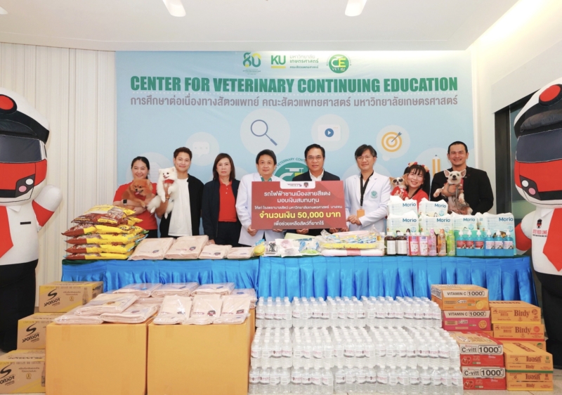 บริษัท รถไฟฟ้า ร.ฟ.ท. จำกัด จัดโครงการ CSR รถไฟฟ้าสายสีแดงร่วมส่งต่อลมหายใจให้น้องหมาน้องแมว” พร้อมมอบเงินสนับสนุน เพื่อช่วยเหลือสัตว์ที่เจ้าของขาดทุนทรัพย์ในการรักษา ให้แก่คณะสัตวแพทยศาสตร์ มหาวิทยาลัยเกษตรศาสตร์