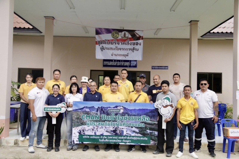 พลตรี ณัฐพร คงสมพงษ์ (ที่ 4 จากซ้าย) ผู้ช่วยกรรมการผู้จัดการสายชุมชนและรัฐกิจสัมพันธ์ บริษัท เคมีแมน จำกัด (มหาชน) หรือ CMAN นำทีมพนักงานจิตอาสา CMAN DMAN เดินทางไปร่วมช่วยเหลือผู้ประสบภัยจากสถานการณ์ความไม่สงบบริเวณแนวชายแดนไทย-กัมพูชา โดยมอบอาหาร น้ำดื่ม อุปกรณ์-เครื่องใช้ และสิ่งของจำเป็นต่างๆ รวมมูลค่ากว่า 800,000 บาท ให้แก่นายมรกต ศรีตูมแก้ว (ที่ 5 จากซ้าย) นายอำเภอพยุห์ ณ ที่ว่าการอำเภอพยุห์ จังหวัดศรีสะเกษ เพื่อส่งถึงผู้ประสบภัยกว่า 4,000 คน ที่กระจายอยู่ใน 19 ศูนย์พักคอยและศูนย์อพยพ พร้อมมอบกำลังใจให้กับทหารกล้าทุกคนที่กำลังปฏิบัติหน้าที่อยู่ในพื้นที่ ทั้งนี้ เคมีแมนเชื่อมั่นว่า การยื่นมือช่วยเหลือกันในยามวิกฤติ คือพลังสำคัญที่จะทำให้สังคมก้าวผ่านความยากลำบากไปด้วยกัน และเคมีแมนจะยังคงยืนหยัดเคียงข้างชุมชนในทุกสถานการณ์ เพื่อสร้างสังคมที่เข้มแข็งและยั่งยืน