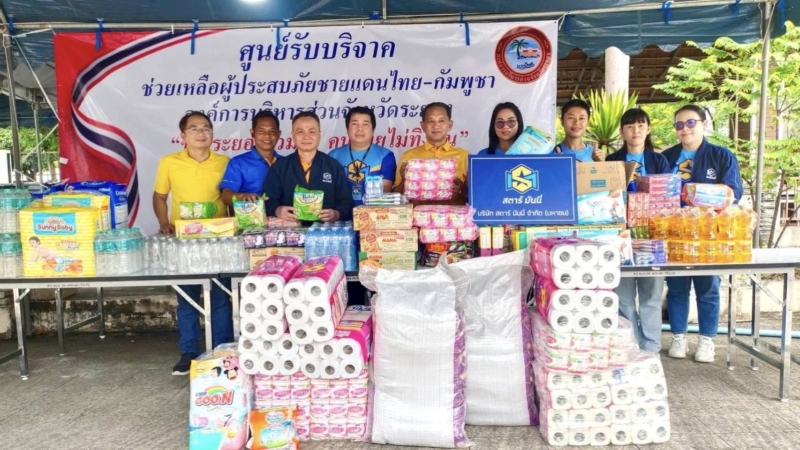 บริษัท สตาร์ มันนี่ จำกัด (มหาชน) (SM) ผู้นำด้านสินเชื่อรายย่อยภายใต้แบรนด์ “สตาร์ มันนี่” ร่วมส่งต่อความห่วงใยแก่ผู้ประสบภัยจากสถานการณ์ความไม่สงบบริเวณชายแดนไทย–กัมพูชา โดยนำทีมพนักงานส่งมอบสิ่งของอุปโภคบริโภคจำเป็น อาทิ ทิชชู่ น้ำดื่ม อาหารแห้ง ผ้าอ้อมเด็ก และนมผง ให้แก่ศูนย์รับบริจาค ณ องค์การบริหารส่วนจังหวัดระยอง