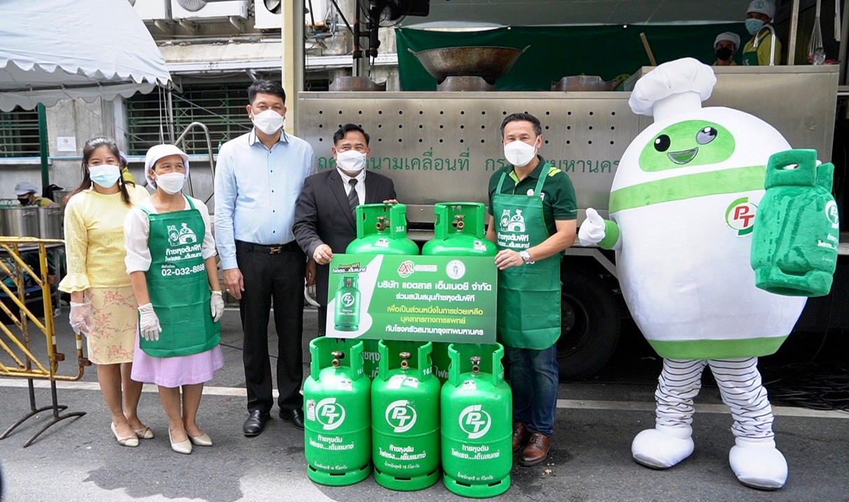 วันที่ 17 กันยายน 2564 บริษัท แอตลาส เอ็นเนอยี จํากัด บริษัทในกลุ่ม PTG ผู้จัดจำหน่ายก๊าซหุงต้มพีที นำโดยนายสุวัชชัย พิทักษ์วงศาภรณ์ กรรมการผู้จัดการ ได้ลงพื้นมอบผลิตภัณฑ์ก๊าซหุงต้มพีที เพื่อร่วมสนับสนุนรถครัวสนามเคลื่อนที่ กรุงเทพมหานคร โดยมีนายเฉลิมพล โชตินุชิต ผู้อำนวยการสำนักพัฒนาสังคมกรุงเทพมหานครเป็นผู้รับมอบ ณ บริเวณด้านข้างศาลาว่าการกรุงเทพมหานคร (เสาชิงช้า) เพื่อประกอบอาหารปรุงสุกใหม่บรรจุกล่อง สำหรับมื้อกลางวันและมื้อเย็น สัปดาห์ละ 2 วัน ทุกวันอังคารและวันศุกร์ ส่งมอบให้กับบุคลากรทางการแพทย์ เจ้าหน้าที่ที่ปฏิบัติงานในโรงพยาบาลสังกัด กรุงเทพมหานคร และโรงพยาบาลสนาม หน่วยอาสาสมัคร รวมถึงพนักงานขับรถยนต์ ที่กำลังปฏิบัติงานช่วย เหลือผู้ป่วยโควิด-19 เป็นการส่งต่อแรงบันดาลไฟจากก๊าซหุงต้มพีที เพื่อขับเคลื่อนให้คนไทยทุกคน “อยู่ดีมีสุข” พร้อมที่จะก้าวผ่านวิกฤต COVID-19 ไปพร้อมกัน