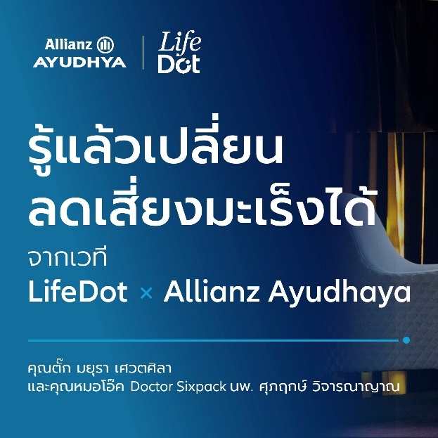 บมจ.อลิอันซ์ อยุธยา ประกันชีวิต ร่วมกับ Lifedot เปิดเวทีสด ยกรายการ TUCK Talk Podcast เชิญแขกรับเชิญพิเศษ นายแพทย์ศุภฤกษ์ วิจารณาญาณ หรือหมอโอ๊ค เจ้าของเพจ Doctor Sixpack ร่วมพูดคุยแบบเจาะลึกเรื่องมะเร็ง โดยเฉพาะมะเร็งในผู้หญิง พร้อมแจกทิปส์ในการจับสัญญาณเตือนจากร่างกาย และเทคนิคในการสร้าง Healthy Lifestyle แบบง่ายๆ ที่ใครๆ ก็นำไปดูแลตัวเองได้ทันที โดยมี ตั๊ก-มยุรา เศวตศิลา พิธีกรคนเก่ง เน้นถามแทนใจคนรักสุขภาพ มาร่วมพูดคุย กิจกรรมนี้สะท้อนจุดยืนของอลิอันซ์ อยุธยา ประกันชีวิต ที่มุ่งหวังให้คนไทยมีสุขภาพแข็งแรงในระยะยาว เพราะเราเชื่อว่าการส่งเสริมให้คนดูแลสุขภาพเชิงป้องกัน คือกุญแจสำคัญในการใช้ชีวิตอย่างมั่นใจและมีคุณภาพในทุกช่วงวัย