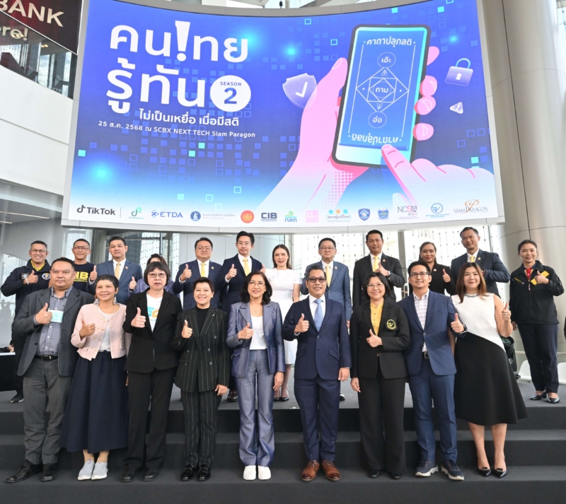 ประเทศไทย, กรุงเทพฯ – TikTok ประเทศไทย แพลตฟอร์มวิดีโอสั้นชั้นนำของโลก ประกาศขยายความร่วมมือในโครงการ #คนไทยรู้ทันซีซัน 2 สู้ภัยออนไลน์ในปี 2568 ผนึกกำลังพันธมิตรเพิ่มอีก 4 หน่วยงาน ได้แก่ สำนักงานคณะกรรมการอาหารและยา (FDA), สำนักงานคณะกรรมการการรักษาความมั่นคงปลอดภัยไซเบอร์แห่งชาติ (NCSA), กรมสอบสวนคดีพิเศษ (DSI), กองบัญชาการตำรวจสืบสวนสอบสวนอาชญากรรมทางเทคโนโลยี (CCIB) ร่วมกับ 8 หน่วยงานหลักทั้งจากภาครัฐและประชาสังคม ได้แก่ กระทรวงดิจิทัลเพื่อเศรษฐกิจและสังคม (MDES), สำนักงานพัฒนาธุรกรรมทางอิเล็กทรอนิกส์ (ETDA), โครงการโคแฟค (Cofact), สำนักงานคณะกรรมการคุ้มครองผู้บริโภค (OCPB), กองบัญชาการตำรวจสอบสวนกลาง (CIB), สภาองค์กรของผู้บริโภค (TCC), ธนาคารแห่งประเทศไทย (BOT) และสำนักงานคณะกรรมการกำกับหลักทรัพย์และตลาดหลักทรัพย์ (SEC) รวมเป็น 12 หน่วยงาน เพื่อยกระดับองค์ความรู้และสร้างเกราะป้องกันภัยออนไลน์ที่แข็งแกร่งและครอบคลุมมากยิ่งขึ้นให้กับคนไทย