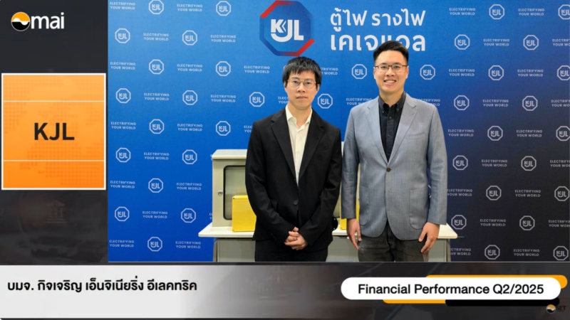 นายเกษมสันต์ สุจิวโรดม ประธานเจ้าหน้าที่บริหาร และนายพงศกร ประเวศวัฒนกุล ผู้อำนวยการฝ่ายบัญชีและการเงิน บริษัท กิจเจริญ เอ็นจิเนียริ่ง อีเลคทริค จำกัด (มหาชน) หรือ KJL ร่วมนำเสนอผลการดำเนินงานไตรมาส 2/2568 ในงาน Opportunity Day ของตลาดหลักทรัพย์แห่งประเทศไทย (SET) โดยบริษัทมีรายได้รวม 308.73 ล้านบาท และมีกำไรสุทธิ 48.65 ล้านบาท เพิ่มขึ้น 57.29% QoQ จากการบริหารต้นทุนและค่าใช้จ่ายอย่างมีประสิทธิภาพ ส่งผลให้อัตรากำไรสุทธิปรับเพิ่มเป็น 15.76%