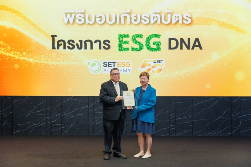 พิชชาพร พัฒนไพสิฐ (ขวา) ผู้อำนวยการฝ่ายทรัพยากรบุคคล บริษัท นีโอ คอร์ปอเรท จำกัด (มหาชน) หรือ NEO รับมอบเกียรติบัตร จาก ดร.ศรพล ตุลยะเสถียร (ซ้าย) รองผู้จัดการ ตลาดหลักทรัพย์แห่งประเทศไทย ในโครงการ “ESG DNA ชุดความรู้ด้านความยั่งยืนสำหรับบุคลากรทุกระดับในองค์กร” ซึ่งมอบให้กับองค์กรที่มีพนักงานผ่านหลักสูตรพื้นฐานด้านความยั่งยืนเกินกว่า 70% โดย NEO เป็น 1 ในองค์กร ที่ผ่านโครงการ ESG DNA ตามหลักสูตร ตอกย้ำการพัฒนาองค์กรและพร้อมเดินหน้าขับเคลื่อนองค์กรตามกรอบเป้าหมายการพัฒนาอย่างยั่งยืน และตามหลัก ธรรมาภิบาลที่ดี (Environmental, Social and Governance: ESG)