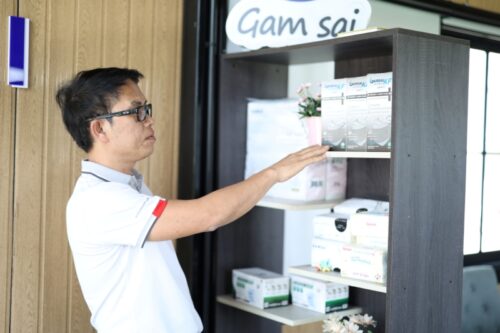 กระดาษทิชชู่GAMSAI ออกตลาดประมาณปี 2567ผ่านช่องทางห้างสรรพสินค้า และออนไลน์ โดยความยากของธุรกิจนี้ เนื่องจากมีคู่แข่งขันในตลาดจำนวนมาก และกำไรต่ำ ส่วนใหญ่จะเน้นแข่งขันเรื่องราคา การสร้างจุดเด่น จึงสำคัญมาก โดยมุ่งที่สร้างความแตกต่างด้วยคุณภาพและแบรนด์ที่น่าเชื่อถือ ด้วยการเป็นกระดาษทิชชู่ความหนา 4 ชั้น นุ่ม เหนียว และไม่เปื่อยยุ่ย ใช้แล้วประหยัด เพราะไม่ต้องใช้ปริมาณมาก