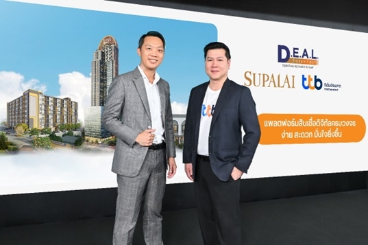 นายอธิศ วงศ์ศศิธร (ขวา) รองประธานเจ้าหน้าที่บริหาร หัวหน้าผลิตภัณฑ์สินเชื่อมีหลักประกัน ทีเอ็มบีธนชาต และ นายไตรเตชะ ตั้งมติธรรม (ซ้าย) กรรมการผู้จัดการ บริษัท ศุภาลัย จำกัด (มหาชน) ร่วมเปิดตัว ระบบ D.E.A.L. (Digital Easy Application for Loan) ที่ศุภาลัยพัฒนาขึ้น เพี่อยกระดับกระบวนการขอสินเชื่อเพื่อที่อยู่อาศัยแบบครบวงจร ซึ่งถือว่าเป็นแพลตฟอร์มสินเชื่อดิจิทัลที่ครบ จบในที่เดียว ตั้งแต่การประเมินความพร้อม เปรียบเทียบข้อเสนอ และเงื่อนไขสินเชื่อที่ตอบโจทย์ความสามารถในการผ่อนชำระ พร้อมติดตามผลอนุมัติ ช่วยให้กระบวนการยื่นกู้ขอสินเชื่อบ้านและคอนโดมิเนียมของลูกค้า ศุภาลัยเป็นไปอย่างสะดวก รวดเร็ว ปลอดภัย และมั่นใจได้ในทุกขั้นตอน พร้อมโปรโมชันสุดพิเศษ สำหรับลูกค้าศุภาลัยที่กู้สินเชื่อบ้านกับทีทีบี อัตราดอกเบี้ยคงที่ 3 ปีแรก 2.75% ต่อปี สามารถเลือกผ่อนชำระได้นานสูงสุด 35 ปี พร้อมช่วยแบ่งเบาภาระค่าใช้จ่ายกับ สิทธิ์ฟรี! ค่าประเมินราคาหลักทรัพย์ และค่าเบี้ยประกันอัคคีภัยตลอดอายุสัญญา
