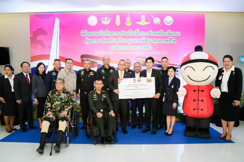 เมื่อวันที่ 19 กันยายน 2568 นายอนุกูล ปีดแก้ว ปลัดกระทรวงการพัฒนาสังคมและความมั่นคงของมนุษย์ (ปลัด พม.) เป็นประธานในพิธีลงนามบันทึกความร่วมมือ (MOU) เพื่อการช่วยเหลือ เยียวยา คุ้มครอง ส่งเสริมสนับสนุนและพัฒนาคุณภาพชีวิตคนพิการและครอบครัว ระหว่างกระทรวงการพัฒนาสังคมและความมั่นคงของมนุษย์ (พม.) โดยกรมส่งเสริมและพัฒนาคุณภาพชีวิตคนพิการ (พก.) กองบัญชาการกองทัพไทย กองทัพบก กองทัพเรือ กองทัพอากาศ สำนักงานตำรวจแห่งชาติ และองค์การสงเคราะห์ทหารผ่านศึก ในพระบรมราชูปถัมภ์ โดยมี นายโชคชัย วิเชียรชัยยะ อธิบดีกรมส่งเสริมและพัฒนาคุณภาพชีวิตคนพิการ กล่าวรายงาน พร้อมด้วย คณะผู้บริหารกระทรวง พม. และหน่วยงานที่ร่วมลงนามบันทึกความร่วมมือฯ ทหารพิการ ผู้ดูแลคนพิการที่ได้รับนวัตกรรมเท้าเทียมไดนามิกส์และรถเข็นวีลแชร์ เข้าร่วมงาน ณ ห้องประชุมปกรณ์ อังศุสิงห์ ชั้น 2 อาคารกรมพัฒนาสังคมและสวัสดิการ กระทรวงการพัฒนาสังคมและความมั่นคงของมนุษย์ สะพานขาว กรุงเทพฯ
