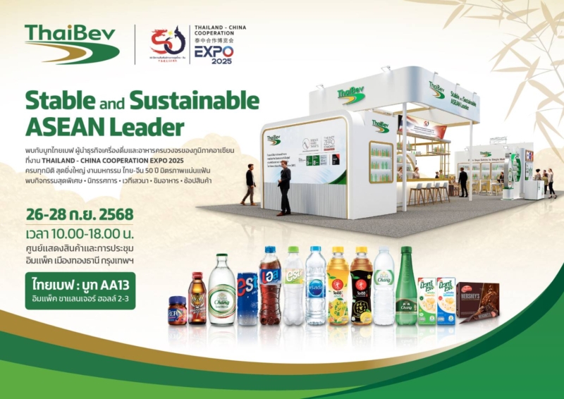บริษัท ไทยเบฟเวอเรจ จำกัด (มหาชน) (“ไทยเบฟ”) ร่วมจัดแสดงสินค้าในงาน Thailand-China Cooperation Expo 2025 ในโอกาสเฉลิมฉลองวาระครบรอบ 50 ปี การสถาปนาความสัมพันธ์ทางการทูตระหว่างระหว่างราชอาณาจักรไทยกับสาธารณรัฐประชาชนจีน และร่วมเป็นส่วนหนึ่งในการผลักดันประเทศไทยสู่การเป็นศูนย์กลางห่วงโซ่อุปทานโลก (Global Supply Chain Hub) และขยายความร่วมมือด้านการค้า การลงทุนในทุกมิติ