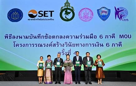 อัสสเดช คงสิริ กรรมการและผู้จัดการ ตลาดหลักทรัพย์แห่งประเทศไทย พร้อมด้วย คุณหญิงณัฐิกา วัธนเวคิน อังอุบลกุล ประธานสหพันธ์สมาคมสตรีนักธุรกิจและวิชาชีพแห่งประเทศไทยฯ และผู้บริหารอีก 5 ภาคีเครือข่าย ร่วมพิธีลงนาม MOU ความร่วมมือโครงการ “รณรงค์สร้างวินัยทางการเงิน” ระยะที่ 4 (ปี 2568-2571) เมื่อเร็วๆ นี้ โดยตลาดหลักทรัพย์ฯ มุ่งสนับสนุนองค์ความรู้ด้านการเงินขั้นพื้นฐานและการลงทุนอย่างถูกวิธี เพื่อส่งเสริมการสร้างวินัยทางการเงินอย่างต่อเนื่อง พร้อมขยายผลสู่องค์กรและชุมชนในวงกว้าง ถือเป็นอีกก้าวสำคัญที่ต่อยอดจากการดำเนินงานตลอด 9 ปีที่ผ่านมา สะท้อนถึงพลังของภาคีเครือข่ายในการยกระดับการทำงานร่วมกัน มุ่งสู่ผลลัพธ์ที่ยั่งยืนในอนาคต