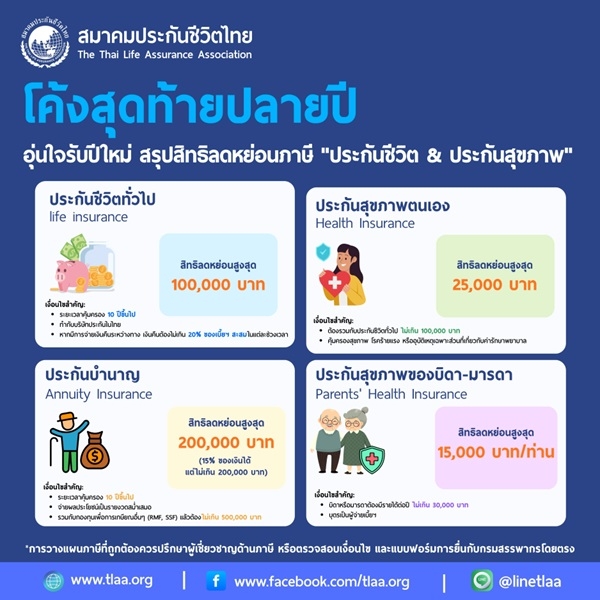 “ปลายปีนี้จึงเป็นโอกาสสำคัญที่ไม่ใช่แค่การวางแผนภาษี แต่เป็นการหันกลับมาทบทวนและสร้างหลักประกันที่มั่นคง เพื่อก้าวเข้าสู่ปีใหม่อย่างมั่นใจ อุ่นใจ และมีคุณภาพชีวิตที่ดี” นายกสมาคมประกันชีวิตไทย กล่าวเพิ่มเติม