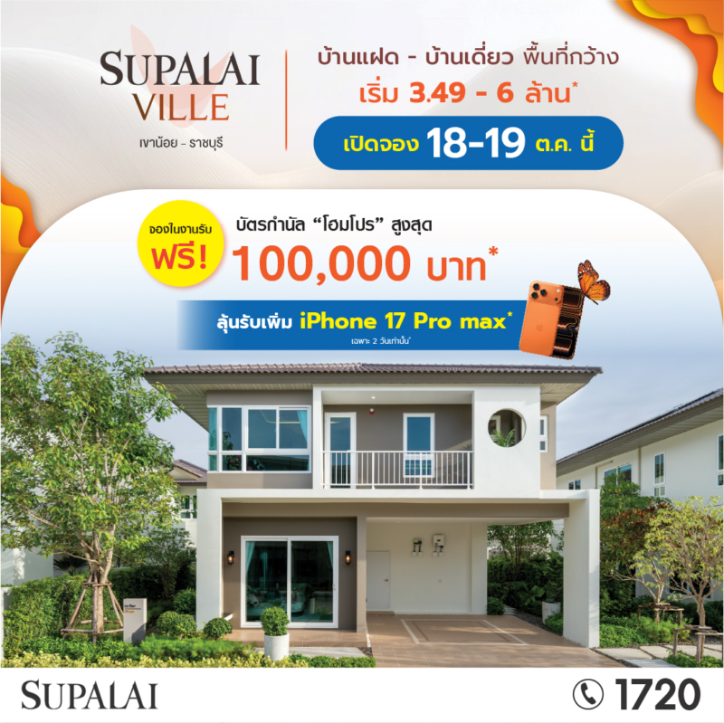 โทร. 1720 หรือเยี่ยมชมรายละเอียดเพิ่มเติมได้ที่ www.supalai.com และ Facebook: Supalai และ ศุภาลัย ราชบุรี