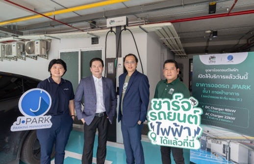 นาย สันติพล เจนวัฒนไพศาล ประธานเจ้าหน้าที่บริหาร คุณจุฑามาศ วิไลเลิศพงศ์พันธ์ประธานเจ้าหน้าที่ฝ่ายเทคโนโลยีสารสนเทศ บริษัท เจนก้องไกล จำกัด (มหาชน) “JPARK” เดินหน้าสนับสนุนการเปลี่ยนผ่านสู่ยุคพลังงานสะอาดและยานยนต์ไฟฟ้า ร่วมกับ นายณรงค์ศักดิ์ เลิศทรัพย์ทวี กรรมการผู้จัดการ บริษัท ฟอร์ท สมาร์ท เซอร์วิส จำกัด (มหาชน) เปิดให้บริการ สถานีชาร์จรถยนต์ไฟฟ้า “GINKA Charge Point” ณ โครงการ JPARK กาญจนสุข จ.นนทบุรี เพื่ออำนวยความสะดวกแก่ผู้ขับขี่รถยนต์ไฟฟ้าในย่านกรุงเทพฯ ตะวันตก และพื้นที่ปริมณฑล