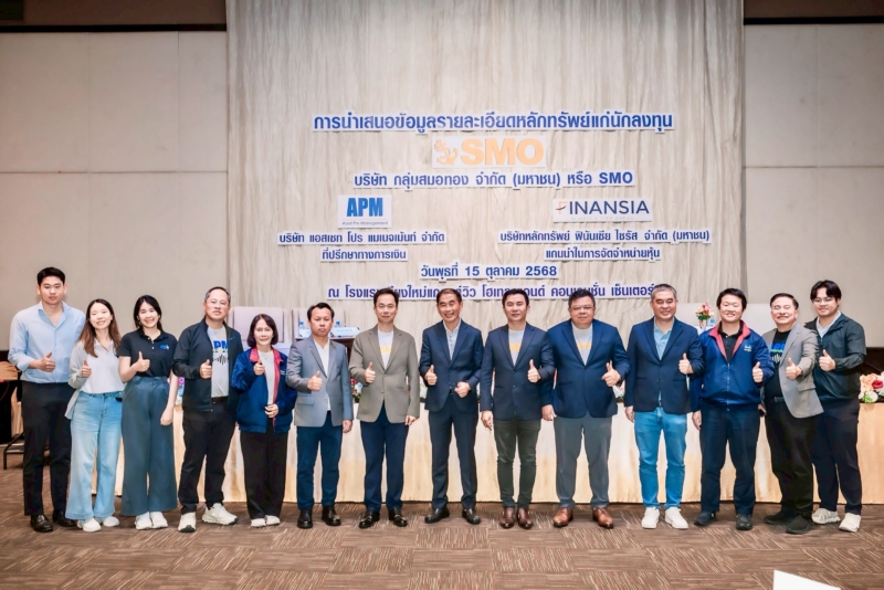 นายกิตติพงษ์ พวงมาลา ประธานเจ้าหน้าที่บริหาร นายกุศล ศรีเปารยะ ประธานเจ้าหน้าที่บริหารการเงิน นายโจซ์สัน ลิม กรรมการผู้จัดการสายงานนวัตกรรมและการค้าระหว่างประเทศ นายศักดา ทองรอง รองกรรมการผู้จัดการอาวุโส สายงานสำนักงาน บริษัท กลุ่มสมอทอง จำกัด (มหาชน) หรือ SMO หนึ่งในผู้นำในการผลิตและจำหน่ายน้ำมันปาล์มดิบของประเทศไทย ซึ่งมีโรงงาน 4 จุดครอบคลุมพื้นที่ยุทธศาสตร์สำคัญของปาล์มน้ำมัน และธุรกิจผลิตและจำหน่ายไฟฟ้าจากเชื้อเพลิงก๊าซชีวภาพ พร้อมด้วยดร.สมภพ ศักดิ์พันธ์พนม ประธานกรรมการ นายสมศักดิ์ ศิริชัยนฤมิตร ประธานเจ้าหน้าที่บริหาร นายสุริยา ธรรมธีระ รองกรรมการผู้จัดการ บริษัท แอสเซท โปร แมเนจเม้นท์ จำกัด (APM) ในฐานะที่ปรึกษาทางการเงินและนายสมภพ กีระสุนทรพงษ์ กรรมการผู้อำนวยการ บริษัทหลักทรัพย์ ฟินันเซียไซรัส จำกัด (มหาชน) ในฐานะแกนนำการจัดจำหน่ายและรับประกันการจำหน่าย ร่วมนำเสนอข้อมูลธุรกิจ วิสัยทัศน์ ข้อมูลทางการเงิน และศักยภาพการเติบโตของบริษัท ให้แก่นักลงทุนในจังหวัดเชียงใหม่ โดยมีนักลงทุนให้ความสนใจเข้าร่วมรับฟังข้อมูลเป็นจำนวนมาก ณ โรงแรมเชียงใหม่แกรนด์วิว จ.เชียงใหม่
