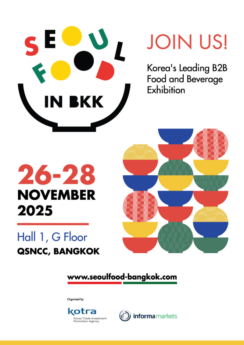 กระแสความนิยม K-Food ยังคงเติบโตอย่างต่อเนื่องทั่วโลก โดยประเทศไทยถือเป็นศูนย์กลางของวัฒนธรรมเกาหลีในอาเซียน ดังนั้นจึงได้รับเกียรติให้เป็นเจ้าภาพจัดงานแสดงสินค้าอาหารเกาหลี “SEOUL FOOD in Bangkok 2025” โดยมีกำหนดจัดขึ้นเป็นเวลา 3 วัน ตั้งแต่วันที่ 26 – 28 พฤศจิกายน 2025 ณ ศูนย์การประชุมแห่งชาติสิริกิติ์ (QSNCC)