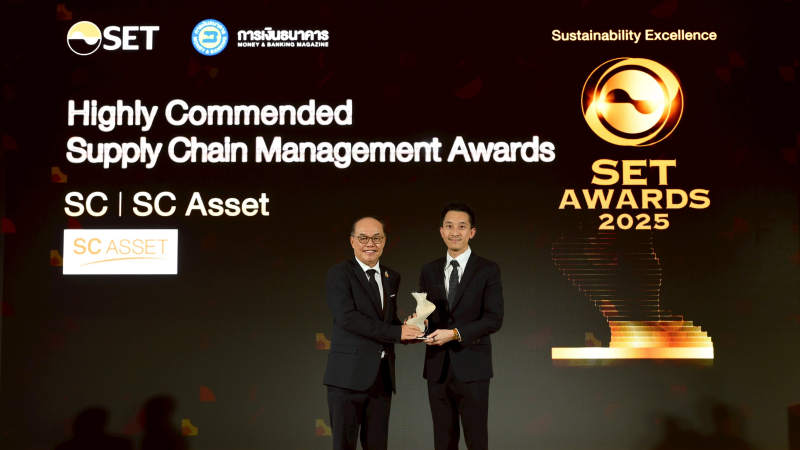 นายณัฐพงศ์ คุณากรวงศ์ ประธานเจ้าหน้าที่บริหาร บริษัท เอสซี แอสเสท คอร์ปอเรชั่น จำกัด (มหาชน) หรือ SC Asset เปิดเผยว่า บริษัทได้รับรางวัลแห่งเกียรติยศด้านความยั่งยืนจากเวที SET Awards 2025 จัดโดยตลาดหลักทรัพย์แห่งประเทศไทยและวารสารการเงินธนาคาร ได้แก่ รางวัล Sustainability Excellence: Highly Commended Supply Chain Management Awards ที่มอบให้กับบริษัทจดทะเบียน ที่มีความโดดเด่นในการบริหารจัดการห่วงโซ่อุปทานอย่างมีประสิทธิภาพ ยั่งยืนและสร้างผลลัพธ์ที่เป็นรูปธรรมต่อทั้งองค์กรและคู่ค้า เพื่อนำไปสู่โอกาสการแข่งขันเชิงธุรกิจ