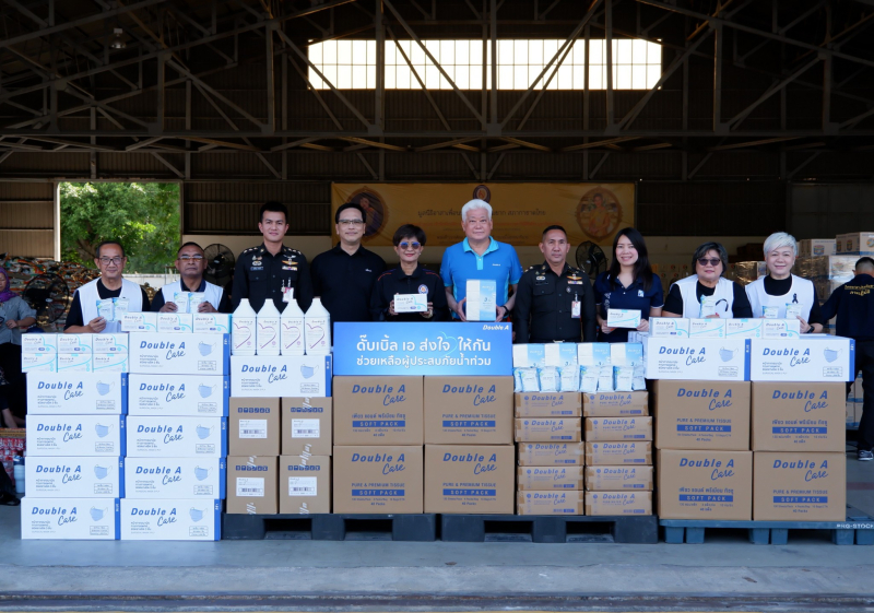 ดั๊บเบิ้ล เอ ส่งความห่วงใย ส่งความช่วยเหลือให้ผู้ประสบอุทกภัย นำโดย คุณชาญวิทย์ จารุสมบัติ กรรมการและรองกรรมการผู้จัดการใหญ่ ด้านสื่อสารและภาพลักษณ์องค์กร ดั๊บเบิ้ล เอ เข้ามอบผลิตภัณฑ์เพื่อสุขอนามัย Double A Care ได้แก่ หน้ากากอนามัยทางการแพทย์ น้ำยาทำความสะอาดพื้น, ทิชชูเพียวแอนด์พรีเมียม, ผ้าเช็ดทำความสะอาดผิวสูตรอ่อนโยน (Pure Water Wipes)ให้กับมูลนิธิอาสาเพื่อนพึ่ง (ภาฯ) ยามยาก สภากาชาดไทย เพื่อนำไปช่วยเหลือและฟื้นฟูจากสถานการณ์น้ำท่วมแก่ผู้ประสบภัย โดยเฉพาะในพื้นที่ภาคใต้ที่ได้รับผลกระทบเป็นอย่างมาก โดยมี คุณนฤมล ล้อมทอง กรรมการและรองเลขาธิการมูลนิธิฯ (ด้านการบริหาร) เป็นผู้แทนรับมอบ นอกจากนี้ พนักงานดั๊บเบิ้ล เอ จิตอาสา ยังได้ร่วมบรรจุถุงยังชีพพระราชทานเพื่อบรรเทาความเดือดร้อนและสร้างขวัญกำลังใจให้กับประชาชนอีกด้วย ณ กองการบิน ศูนย์การเคลื่อนย้ายกองทัพบก บางเขน กรุงเทพฯ