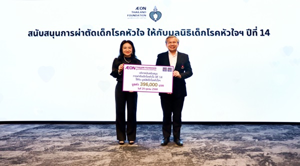 กรุงเทพฯ – มูลนิธิอิออนประเทศไทย นำโดย นางสุพร วัธนเวคิน ประธานมูลนิธิอิออนประเทศไทย มอบเงินสนับสนุนจำนวน 396,000 บาท ให้แก่มูลนิธิเด็กโรคหัวใจ ในพระอุปถัมภ์ของสมเด็จพระเจ้าพี่นางเธอ เจ้าฟ้ากัลยาณิวัฒนา กรมหลวงนราธิวาสราชนครินทร์ เพื่อร่วมสนับสนุนโครงการ “รักษาเด็กโรคหัวใจพิการแต่กำเนิดด้วยการผ่าตัดและการใช้สายสวนหัวใจนอกเวลาราชการ” ต่อเนื่องเป็นปีที่ 14 โดยมี ผศ.นพ.สุเทพ วาณิชย์กุล ประธานมูลนิธิเด็กโรคหัวใจฯ เป็นผู้รับมอบ
