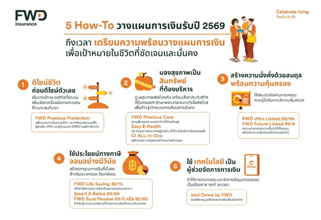 การก้าวเข้าสู่ปีใหม่คือช่วงเวลาที่ดีในการทบทวนเป้าหมายชีวิต และจัดระบบการเงินให้มั่นคง พร้อมรับโอกาส และความท้าทายในอนาคต ท่ามกลางเทรนด์ที่ผู้บริโภคมองหาเครื่องมือทางการเงินที่โปร่งใส เข้าใจง่าย และตอบโจทย์กับการใช้ชีวิตได้จริง ข้อมูลจากกระทรวงการคลังระบุว่า เศรษฐกิจไทยมีแนวโน้มจะขยายตัวในระดับ 2%[1] ในปี 2569 ซึ่งเป็นสัญญาณสำคัญให้ทุกคน “เตรียมความพร้อม” วางแผนทางการเงินอย่างรัดกุม เพื่อสร้างความมั่งคั่งให้เติบโตตามเป้าหมายที่ตั้งไว้ FWD ประกันชีวิต ขอแนะนำวิธีคิดที่ทำให้การวางแผนทางการเงินสำหรับชีวิตเป็นเรื่องที่ทำได้เอง โดยใช้ประกันชีวิตเป็นอีกหนึ่งในเครื่องมือทางการเงิน ที่ช่วยเสริมพลังให้ไปถึงเป้าหมายได้สำเร็จด้วยความมั่นใจ